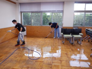その上、施設からは18時から施設をどうしても使用したいという利用者がいるとの話もあり、正直言ってこんな状態のときに!?と心が折れそうになりましたが、休憩もとらずに8時間黙々と土砂を掃き出し、何度も何度もタオルで床を拭き上げて何とか最低限の作業を終えることが出来ました。