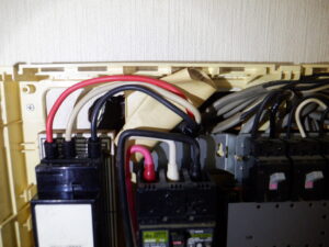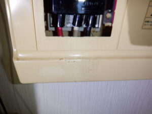 今日のお宅はネズミが出入りするような場所はなく見当たらないので、出入り口を開けっ放しにした時に侵入したことも考えられましたが、細部にわたって調査をしたところ配電盤の中が齧られて穴が空けられているのが見つかりました。