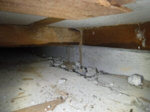 畳をあげてみると、やはりシロアリの仕業で床下を調査すると蟻道や食害が確認できました。