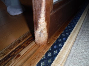 普段はおじい様がお一人で住んでいるお宅で、戸がネズミかにかじられているとのことで確認してみるとそれは以前飼っていた猫の仕業でした。