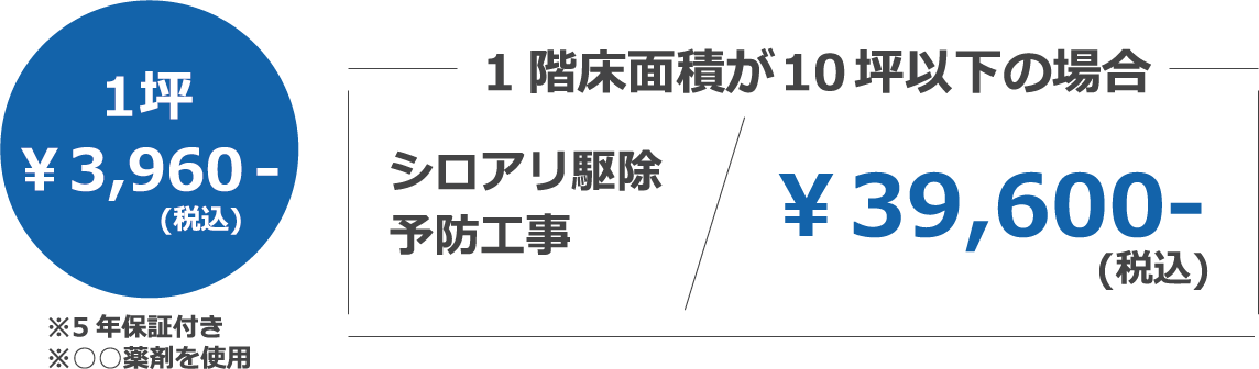 当社の施工費用は、「被害の範囲」「建物の広さ」「使用薬剤」「施工方法」によって決まります。